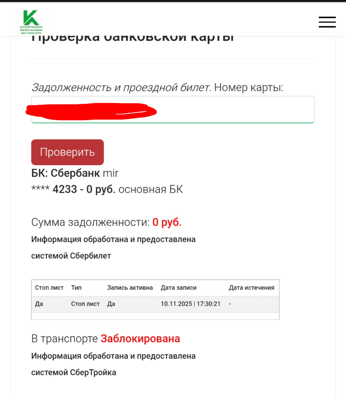 ⚡ на стороне СберТройка произошел сбой, карты стали попадать в стоп лист с 17:30 от 10.11.2025 г